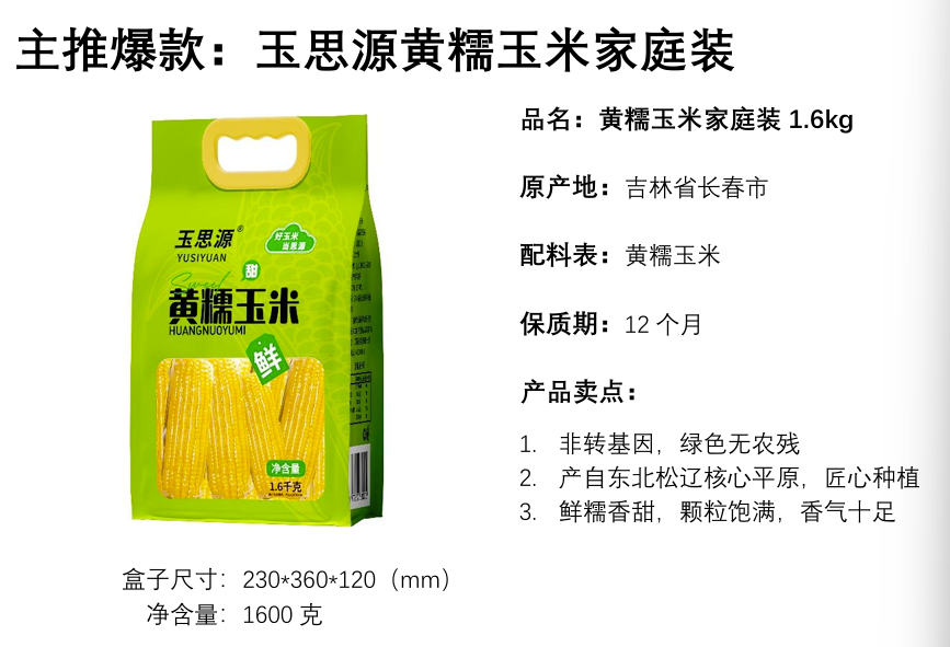 玉思源黄糯玉米家庭装1.6kg