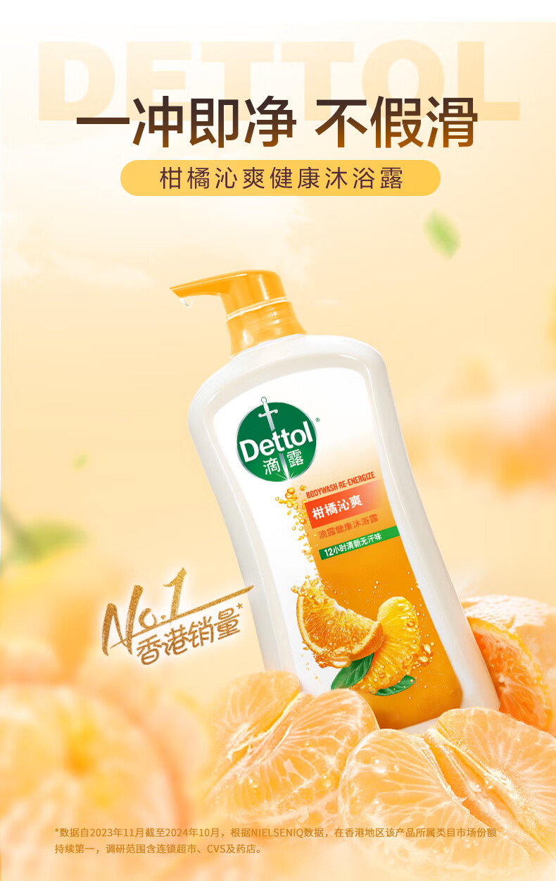 滴露健康沐浴露柑橘沁爽,99% 抑菌力守护肌肤健康,pH 均衡 0 皂基配方温和亲肤,适配各种肤质。特添柑橘香氛,12 小时清新无汗味,泡沫绵密易冲洗,洗后清爽不紧绷、不假滑。含甘油等保湿成分,清洁同时锁水保湿