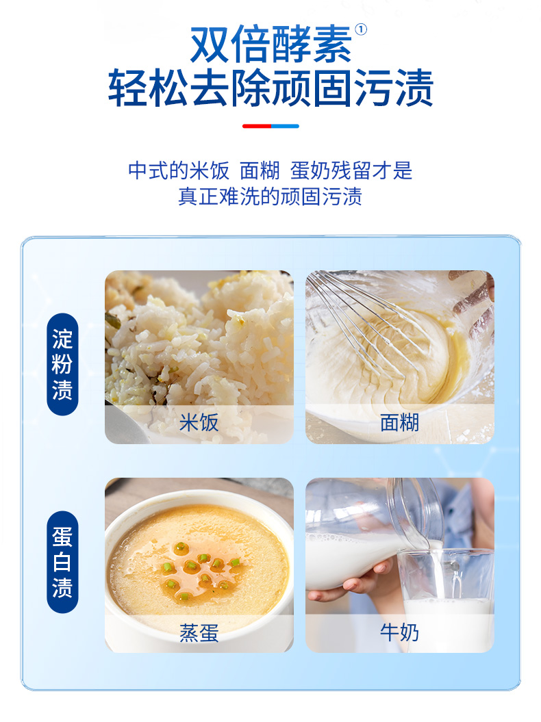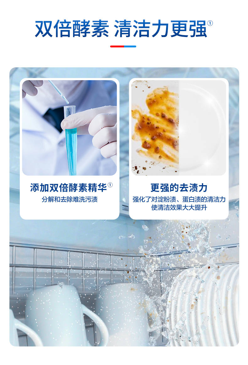 洗碗机专用洗涤粉剂,双倍酵素 + 强效去渍配方,强力瓦解重油污、烧焦残渣、干涸酱汁等顽固污渍。99% 抑菌率,99.97% 去除幽门螺杆菌,守护餐具卫生。无磷环保 0 残留,适配全机型,用量可控不浪费。软化水质防垢,保护洗碗机延长寿命,餐具洁净光亮无斑痕,