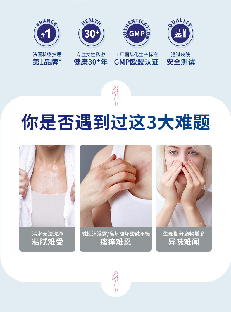 Intima 茵缇玛纯净无香护理液,97% 天然植萃 + APG 表活,温和洁净无刺激。pH4.9 弱酸配方贴合私密环境,维持菌群平衡。7 大 0 添加(无皂基 / 酒精 / 香精等),经皮肤科与妇科测试,敏感肌、经期皆可用。泡沫易冲无残留,洗后水润不干燥,日常养护更安心