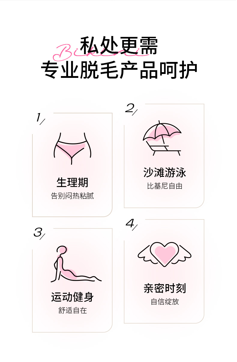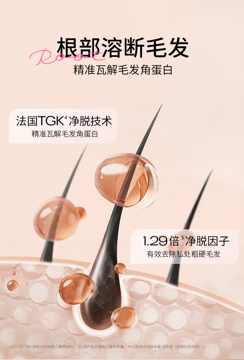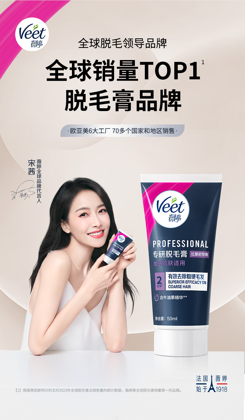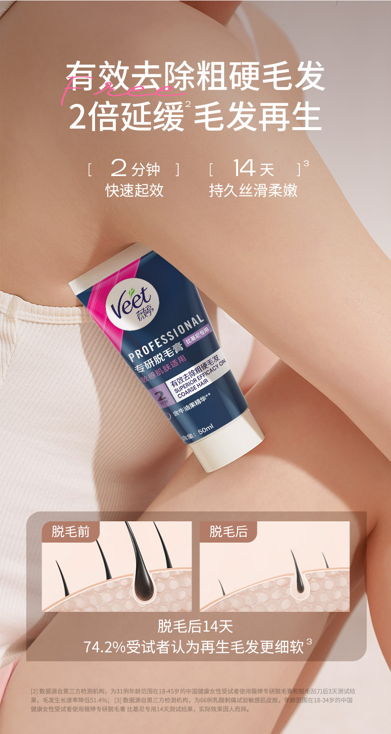 薇婷专研比基尼专用脱毛膏,法国进口配方专为私密娇嫩肌肤设计。2-6 分钟快速溶断粗硬毛发,不留黑点与硬茬。添加牛油果精华 + 保湿因子,6 大 0 添加温和无刺激,敏感肌适用。脱后肌肤水润丝滑,新生毛发更细软,50ml 便携装,居家差旅皆方便。