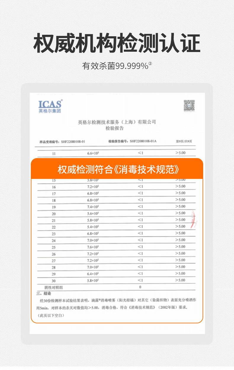 99.999% 高效杀菌灭真菌,99.99% 灭活常见病毒,30 秒快速起效。阳光柑橘香清新祛味,75% 酒精配方安全无残留,吸入无毒。喷雾细腻速干不打湿表面,适用于鞋袜、马桶、家具、快递等多场景,一喷即用无需稀释,454ml 大容量耐用,日常消毒便捷安心。