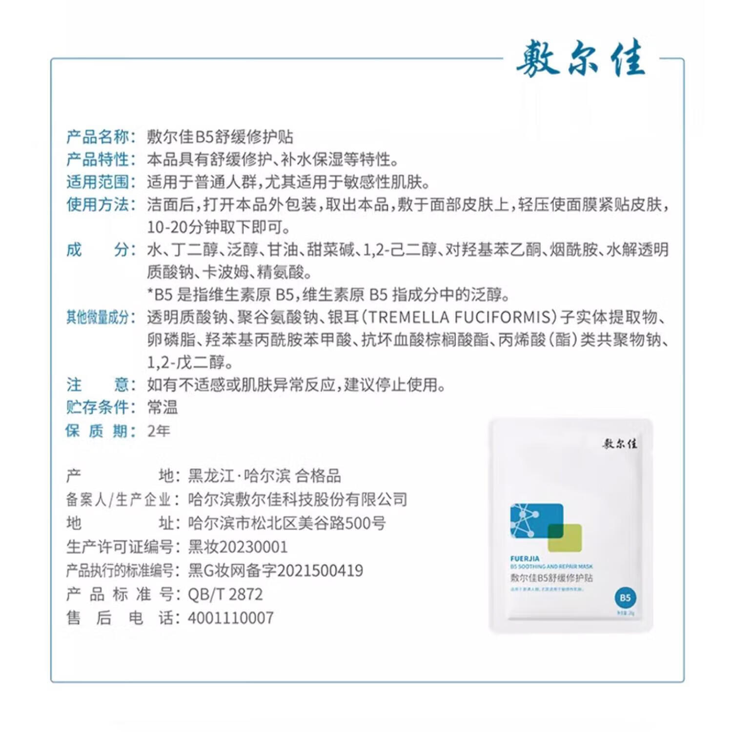 首页> 美妆个护> 面部护理> 面膜面贴> 敷尔佳B5舒缓修复贴 5贴/盒