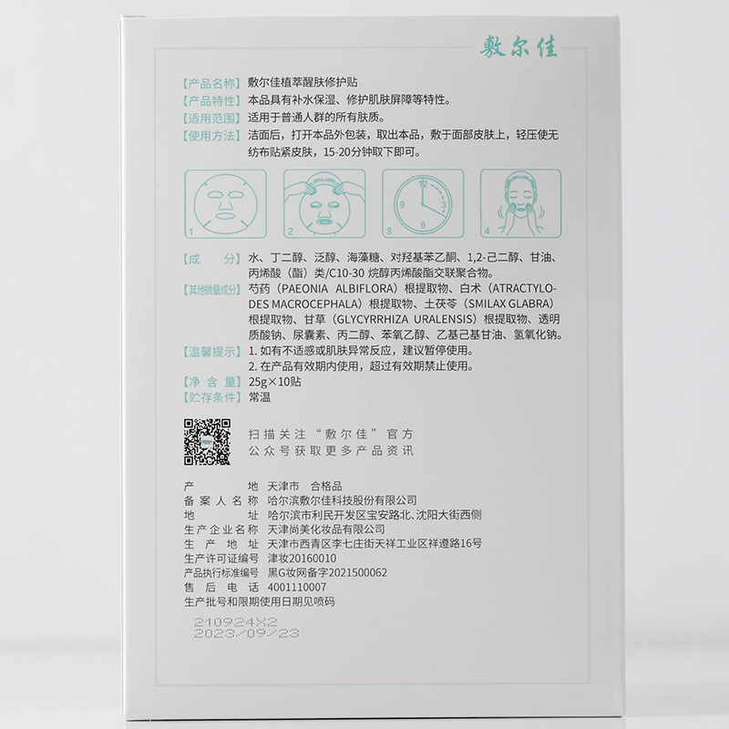 敷尔佳植萃醒肤修护贴25g 10贴