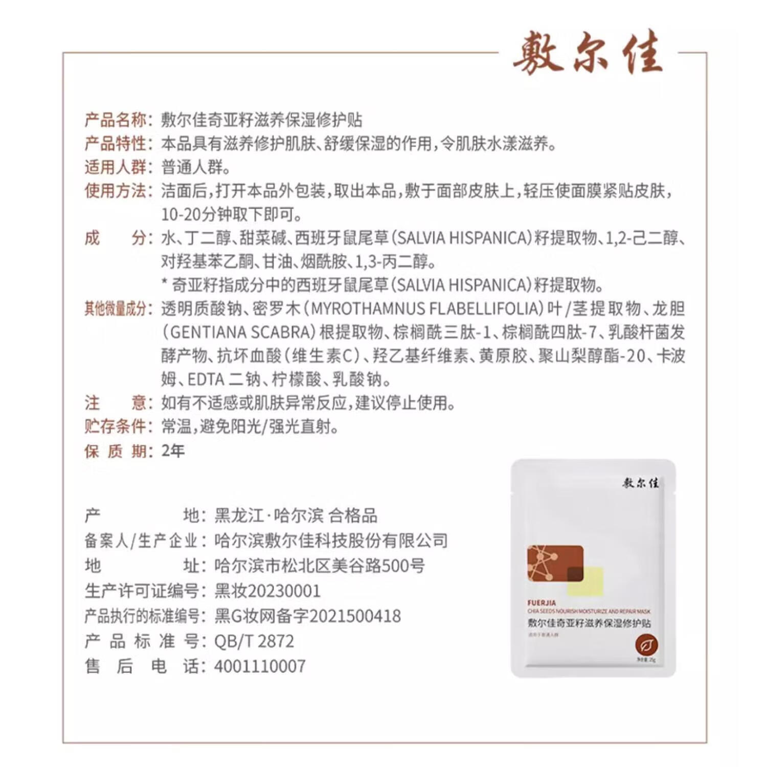 敷尔佳奇亚籽滋养保湿修护贴25g 5贴