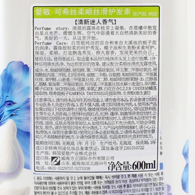 爱敬 可希丝 柔顺丝滑护发乳600ml
