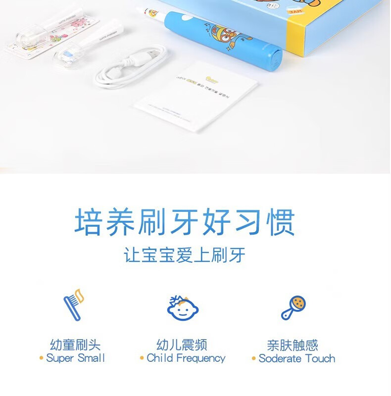 首页> 美妆个护> 口腔护理> 牙刷/牙线> 啵乐乐儿童电动牙刷_佩蒂粉(3-12岁)牙刷柄+万丝刷头(呵护刷)+PEDEX(清洁刷)