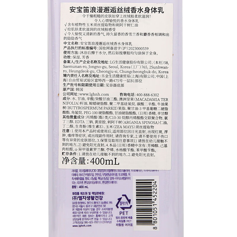 安宝笛浪漫邂逅丝绒香水身体乳(紫)500ml