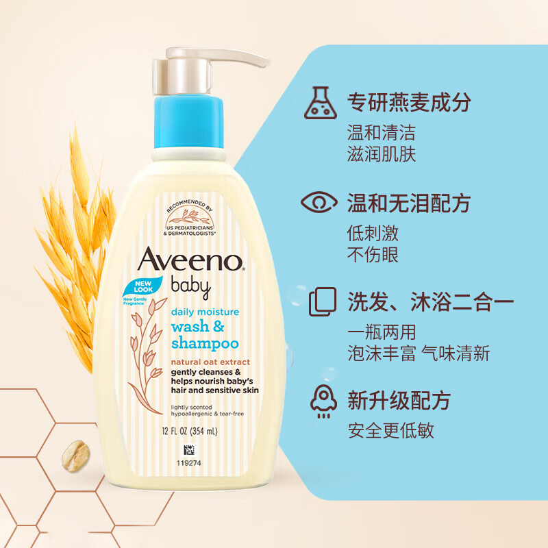 艾惟诺婴儿每日倍护洗发沐浴露二合一354ml