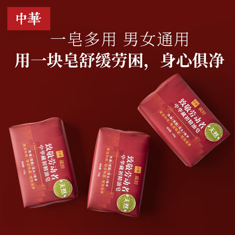 首页> 美妆个护> 身体护理> 手工/香皂> 中华 致敬劳动者皂 360g(120g*3)