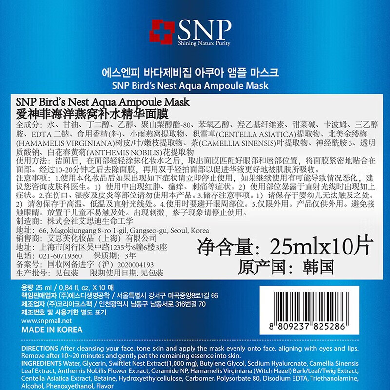 爱神菲海洋燕窝补水安瓶精华面膜 25ml*10片