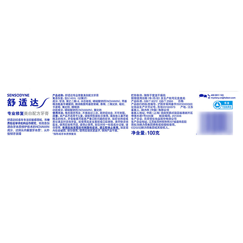 舒适达牙膏 专业修复100g